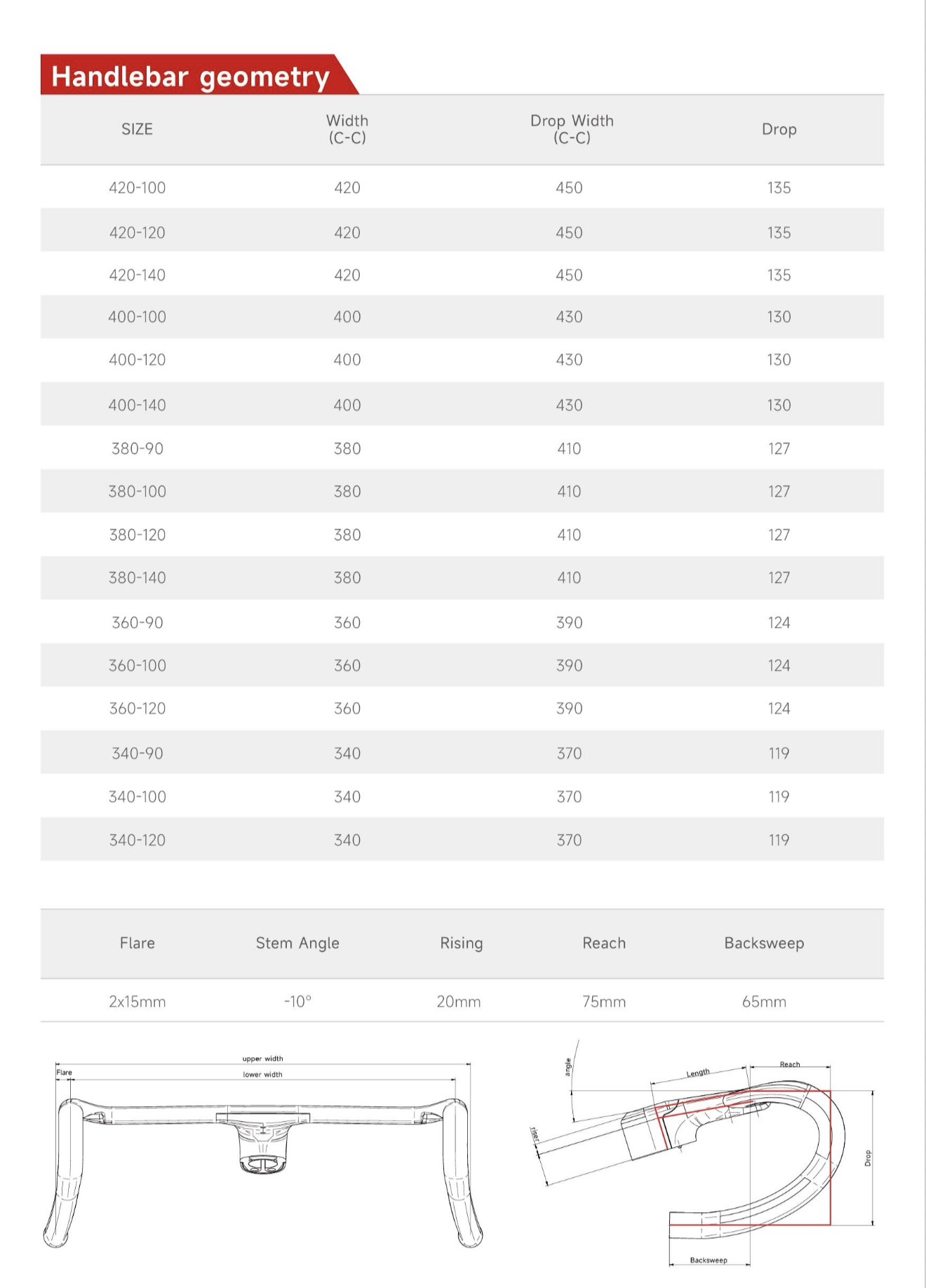 | Handlebar & Stem Sizes |
