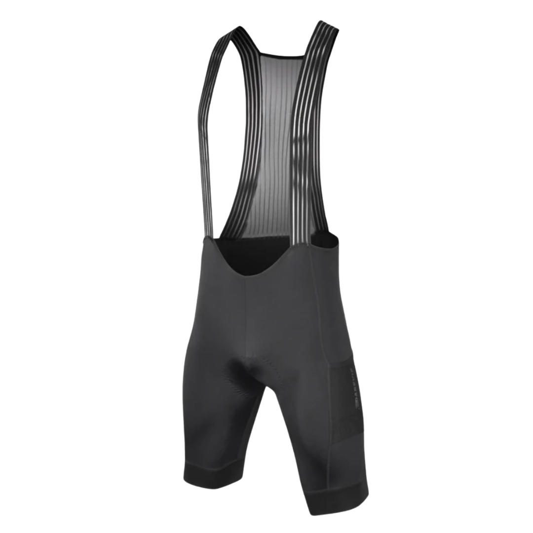 Made from 4-way stretch Korean Lycra that dries quickly and fits close to the leg, featuring a thickened ergonomic foam pad, these bib shorts with side mesh pockets are perfect for long rides in all conditions.
